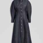 The Denim Cocoon Sleeve Midi Dress explores contemporary wardrobe foundations. Crafted from cotton, the long-sleeve dress is detailed with timeless shirting accents. Tailored to accentuate the waist, the A-line silhouette features voluminous cocoon sleeves and rose gold button detailing. Style with luxurious accessories for a sophisticated ensemble.