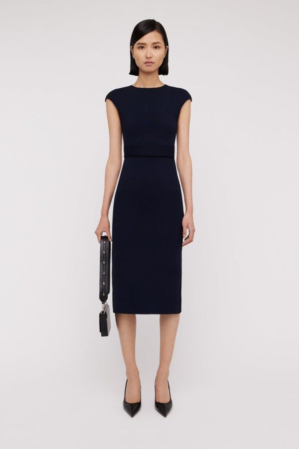 The Crepe Knit Cap Sleeve Dress embodies perennial style and timeless femininity. Crafted from our signature Crepe Knit fabrication, sleek lines and refined detailing enhance the minimalist silhouette. Style with the self-belt and polished accessories for a considered approach to workwear.