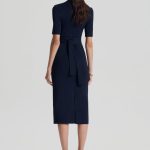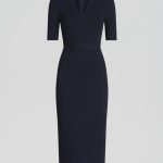 The Crepe Knit V Neck Dress Short Sleeve has a fitted silhouette, elbow sleeve, includes a waist seam belt, V-neckline and falls just below the knee. It also includes a zipper in the back so it’s easy to step in and out of the dress.