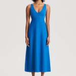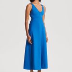 Crepe Knit V Neck Dress is imbued with sophisticated femininity. Crafted from Scanlan Theodore’s signature Crepe Knit fabrication in a vibrant blue colourway, the mid-length silhouette is defined by the deep v-neckline, low cut back and elasticated panelling that sits under the bust. Pair with refined accessories for a sophisticated ensemble.