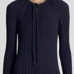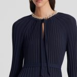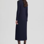 The Pleated Rib Drawcord Dress is imbued with relaxed elegance and sophistication. Crafted from Scanlan Theodore’s signature stretch knit fabrication in a timeless navy hue, the long sleeve dress is defined by the drawcord neckline and minimalist silhouette. Pair with considered accessories for a refined approach to workwear, or upcoming events.