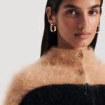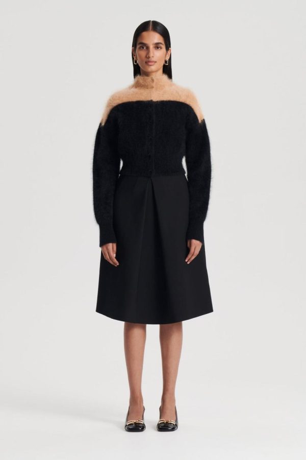 The Cashmere Brushed Cardigan is crafted from luxurious, sustainable cashmere fibres. Sumptuous and richly textured, the cardigan has been knitted to a cropped length and showcases a contrast black and camel design. The mock neckline and slim-fitting cuffs allow the shape to be tucked into high-waisted trousers or mini skirts for a sophisticated ensemble.