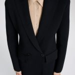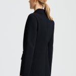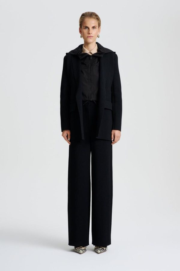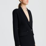 The Crepe Knit Tailored Blazer showcases a contemporary design sensibility. Crafted from Scanlan Theodore’s signature Crepe Knit fabrication, the jacket is tailored to a long-line, double-breasted silhouette. Pair over coordinating Crepe Knit pieces for a refined approach to workwear or style with denim silhouettes for a polished daily ensemble.