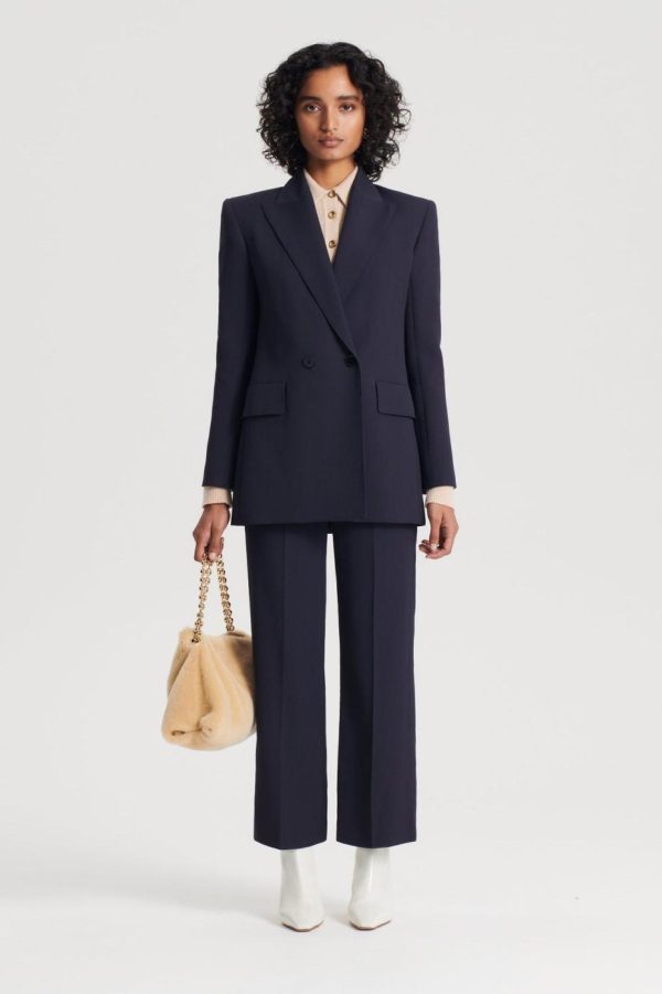 The Tailored Drape Jacket is grounded in sophisticated elegance. Crafted from a lightweight tailoring fabrication in a dark navy colour, the jacket features a neat, double-breasted silhouette with front pocket detailing. Pair with the coordinating trousers, denim or silk dresses for a contemporary approach to considered workwear.