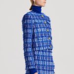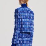 The Tinsel Cargo Jacket showcases the contemporary design sensibility that is synonymous with Scanlan Theodore. Crafted from a cotton and acrylic blend from France, the jacket is tailored to a cropped silhouette. Featuring a round neckline, signature gold poppy button closure and cargo pocket detailing, the jacket showcases a bold cobalt hue that is detailed with intricately woven tinsel thread. Pair with the coordinating skirt and luxurious accessories for a modern iteration of event dressing.