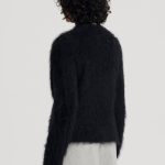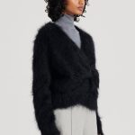 The Brushed Mohair Wrap Cardigan in black is inspired by luminous femininity. Crafted from a responsibly sourced mohair and wool blend, the wrap silhouette is embellished with gold pin detailing – inviting various styling options. Pair with leather pieces for an indulgent textural combination or tailoring for a refined approach to workwear.