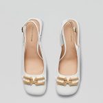The Gold Trim Slingback 5.5 is a classic silhouette imbued with refined modernity. Crafted from high gloss Italian leather, the squared toe silhouette features a heel strap with buckle fastening. Adorned with gold buckle detailing, the slingback is set atop a flared 5.5cm block heel. Pair with dresses or tailoring for sophisticated styling.