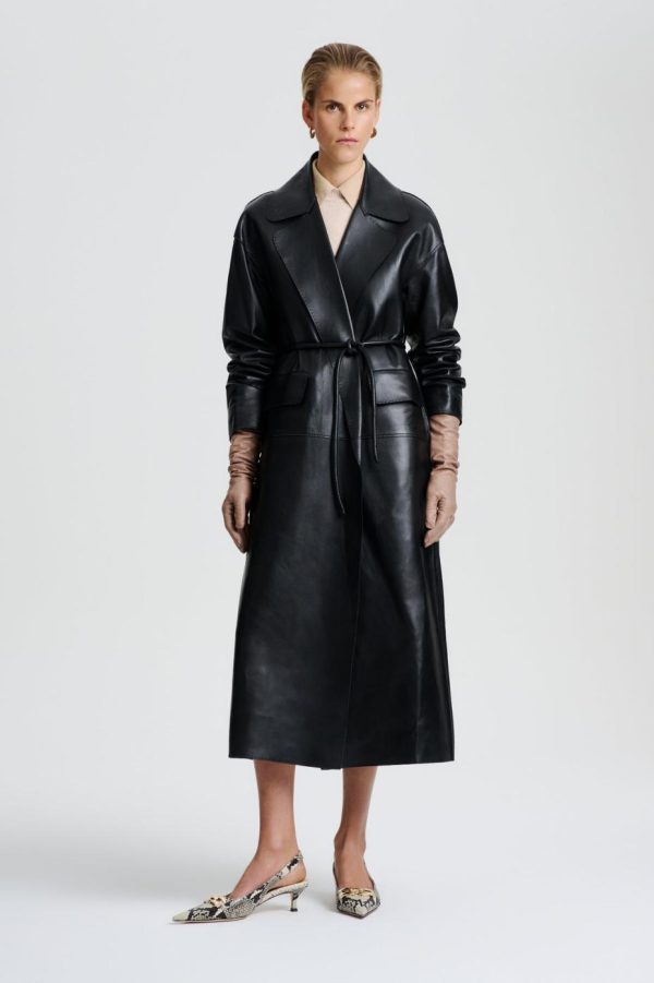 Leather | Women Scanlan Theodore LEATHER BONDED TRENCH Black