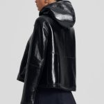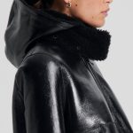 The Shearling Jacket unveils a combined sense of refined elegance and modern luxury. Crafted from 100% lamb shearling and leather, the hood and panel stitching defines the reversible silhouette. The black shearling lining complements the patent black leather, embodying luxurious winter warmth. Designed as an oversized silhouette, the coat jacket features gold zip detailing, practical front pockets and a relaxed collar that can transform into a funnel neckline when fastened. Elevate your winter style by pairing with jeans and heeled boots.