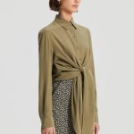 Shirts | Women Scanlan Theodore SILK TIE FRONT SHIRT Olive