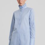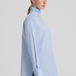 The Stripe Ruffle Shirt interplays foundational pieces with feminine elegance. Lightly tailored from 100% cotton, the shirt showcases ruffle neck detailing. Designed to work seamlessly into your wardrobe, the shirt effortlessly pairs with tailored trousers or leather and, denim.