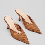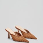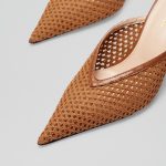 The Mesh Mule interplays classic shapes with modern detailing. Crafted in Italy from a contemporary combination of cotton mesh and supple leather in a tan colourway. Showcasing this season’s effortless styling, the mule silhouette features a closed, pointed toe and V-cut collar, which is set atop a 7.5cm sculptured heel.