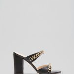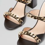 The Sandal With Chains Detail in black are designed as a contemporary iteration of a classic mule silhouette. Adorned with gold chain detailing, soft Italian leather straps sit across the toes and foot for added luxury and comfort. Showcasing this season’s effortless styling, the sandal is finished with a round toe and set atop a 9.5 block heel.