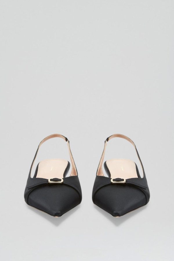 The Satin Slingback interplays timeless elegance with contemporary detailing. Crafted from black satin, the kitten heel is designed to a closed pointed toe and showcasing refined buckle detailing. Pair back with denim, leather or dresses for perennial styling.