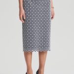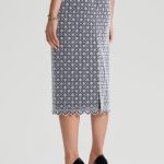 The Embroidered Floral Skirt is inspired by elegant femininity. Crafted from a cotton blend, the mid-length skirt is tailored to a minimalist silhouette and is animated by graphic, floral embroidery. Pair with timeless silk shirting for an elevated approach to workwear or occasion styling.