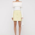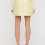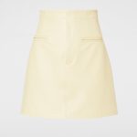 The Leather Mini Skirt is evocative of contemporary femininity and signature simplicity. Crafted from supple leather, the a-line silhouette showcases a soft lemon hue and considered detailing. Style with a mohair sweater for an elegant textural pairing, and finish with heels.