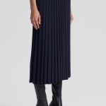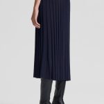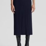 The Pleated Rib Skirt is infused with perennial elegance. Crafted from Scanlan Theodore’s signature pleated rib fabrication, the mid-length skirt is defined by the drawcord waist and fluid silhouette. Pair back with coordinating pleated rib or Crepe Knit pieces for refined femininity.