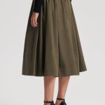 The Wide Cargo Skirt embraces the allure of timeless elegance. Crafted from a crisp cotton blend in a jungle green hue, the mid-length skirt features a floaty, gathered silhouette, with concealed side pockets and elasticated, ruched waistband. Pair with crisp shirting or elevated wardrobe essentials and luxurious accessories for transeasonal styling.