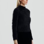 The Brushed Mohair Slim Sweater in black interplays signature fabrications and contemporary silhouettes. Knitted from a responsibly-sourced mohair and wool blend, the sweater is richly textured and detailed with ribbed accents along the neckline, cuffs and waistband. Style the sweater with contemporary denim silhouettes or tailoring for indulgent transeasonal dressing.