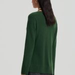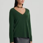 The Cashmere V-Neck Sweater interplays luxurious fabrications with signature silhouettes. Knitted from 100% cashmere in a cypress green colourway, the relaxed sweater features ribbed detailing and a stepped hem. Pair with tailoring or denim silhouettes for refined, transeasonal styling.