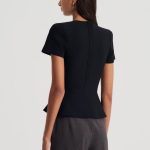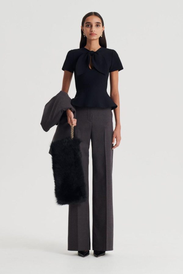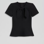 The Crepe Knit Cravat Top in black is reflective of the refined elegance that is synonymous with Scanlan Theodore. Crafted from the brand’s signature Crepe Knit fabrication, the top showcases a front keyhole cut-out and cravat-style necktie. The silhouette is tailored to accentuate the waist with a sculpted, peplum hemline. Pair with complementary Crepe Knit pieces and polished accessories for a sophisticated ensemble.