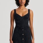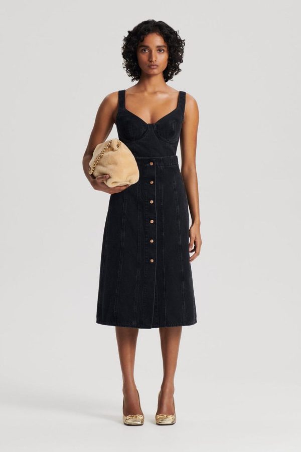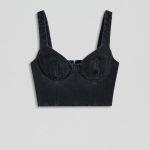The Denim Bralette reinterprets signature Scanlan Theodore denim silhouettes. Crafted from cotton in a black wash, the cropped silhouette is detailed with a flattering sweetheart neckline, bust underwire, back zip fastening and contrast stitching. Pair with coordinating denim silhouettes and polished accessories for contemporary styling.
