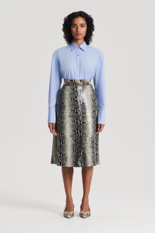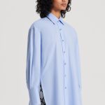 The Parachute Shirt is designed as a renewed iteration of signature wardrobe pieces. Cut from 100% lightweight cotton in a cornflower blue tone, the tailored silhouette features a point collar, buttoned cuffs, dual side vents and a stepped hem. Pair with tailoring or leather for a refined approach to daily or workwear dressing.