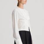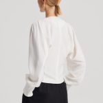 The Silk Satin Draped Top epitomises contemporary femininity. Crafted from lustrous silk blend, the blouse elegantly tailored to accentuate the waistline with intricate, draped detailing through the bodice. Detailed with a refined keyhole cut-out and front split hemline, the tailored silhouette is constructed by the billowing cocoon sleeves. Pair with tailoring and luxurious accessories for a contemporary approach to workwear.