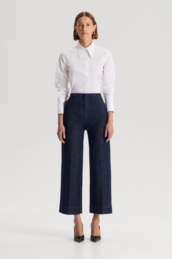Crafted to lengthen the leg, the Denim Cropped Jean embraces a flattering fit, featuring a flared hem, functional side and back pockets, and concealed zip fastening with hidden-button closure. Complete your casual ensemble with our Mercerised T-shirt for the perfect statement.