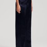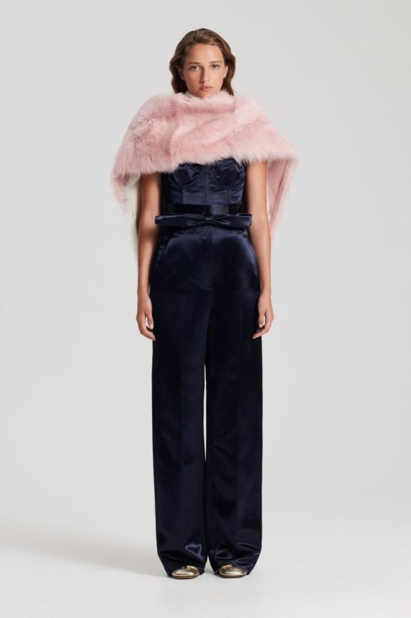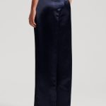 The French Satin Trouser is imbued with luminous sophistication. Crafted from a french wool and silk blend in a ink blue tone, the trouser is tailored to a high-rise, relaxed silhouette with a paperbag waist. Pair with the coordinating bustier and opulent accessories for an alluring ensemble.